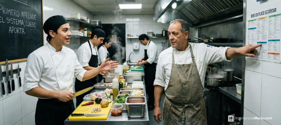 1. Primero que aprenda el sistema (mise en place, ritmos, estándares, limpieza).