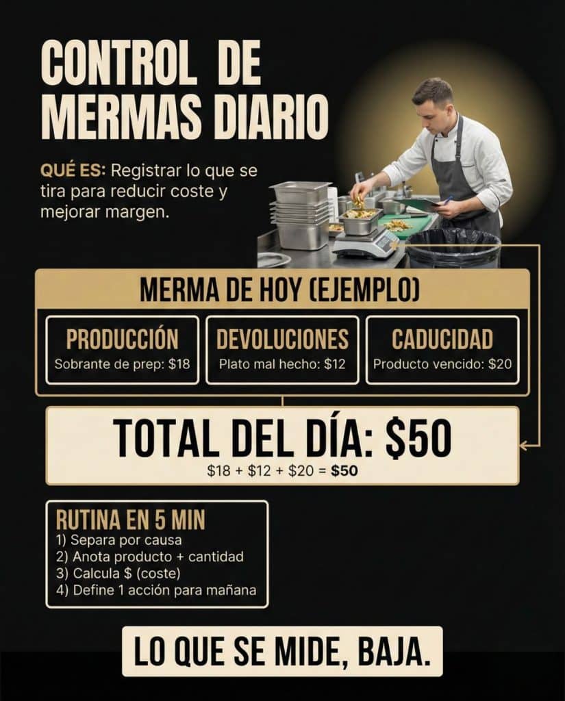 Con una hoja simple, cinco minutos al cierre y una acción clara, ya puedes empezar a bajar las pérdidas. Y en cocina, pocas rutinas tan cortas tienen tanto impacto como esa.