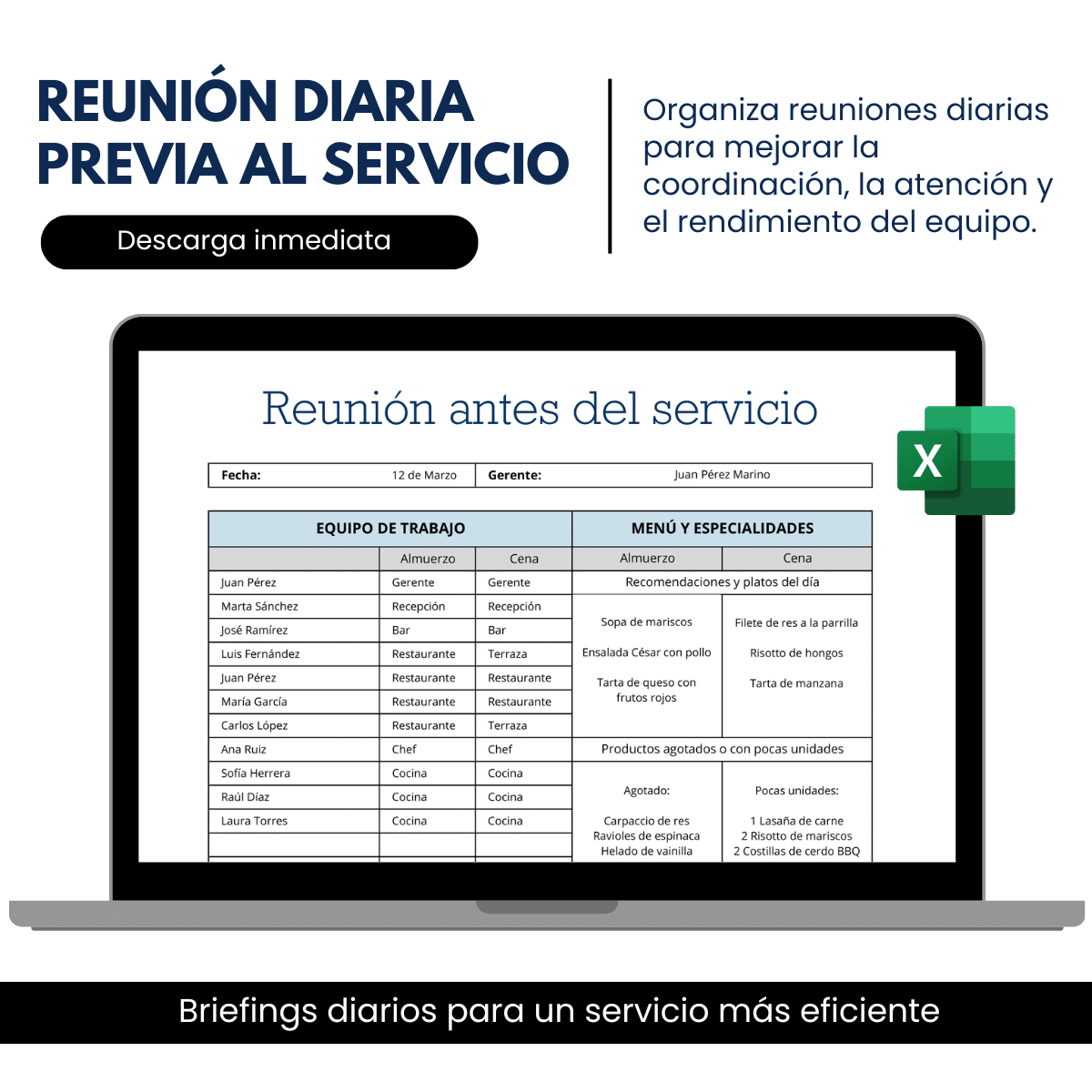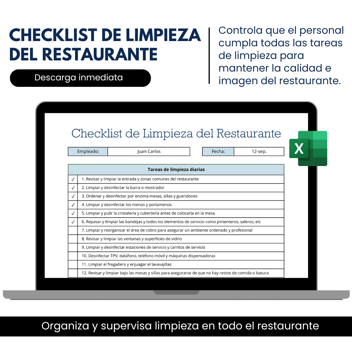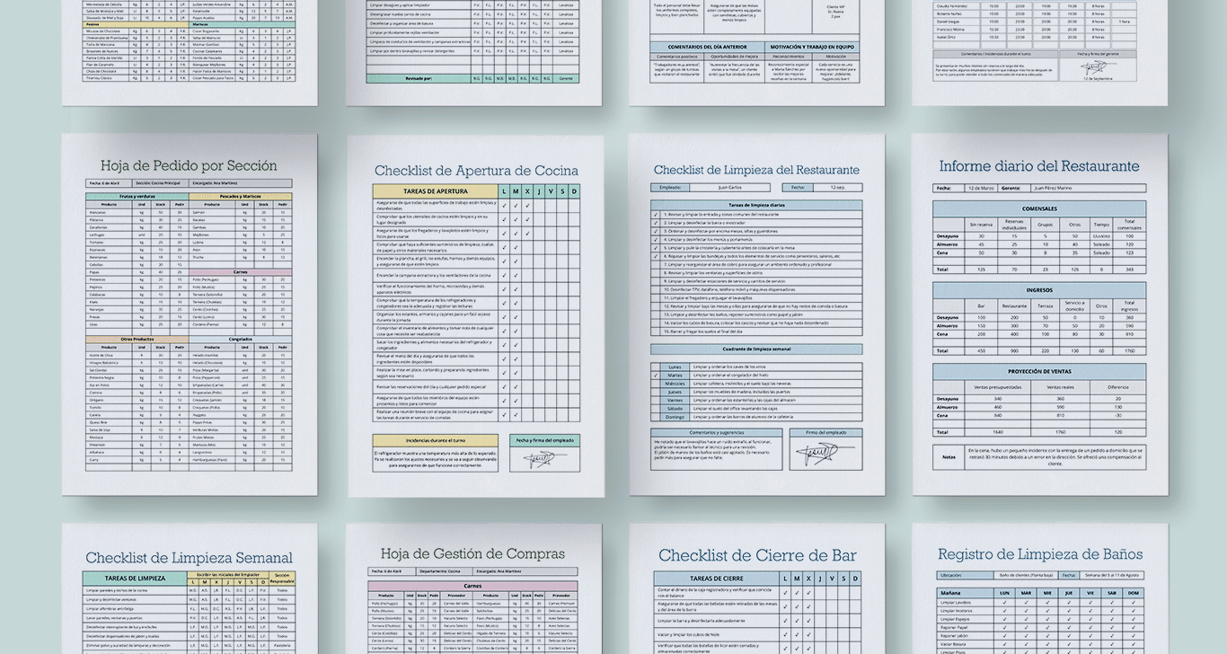 Las plantillas son perfectas para mantener el restaurante en orden. Las listas de limpieza y el control de inventarios son súper útiles, y la hoja para repartir propinas le ha venido genial al equipo.