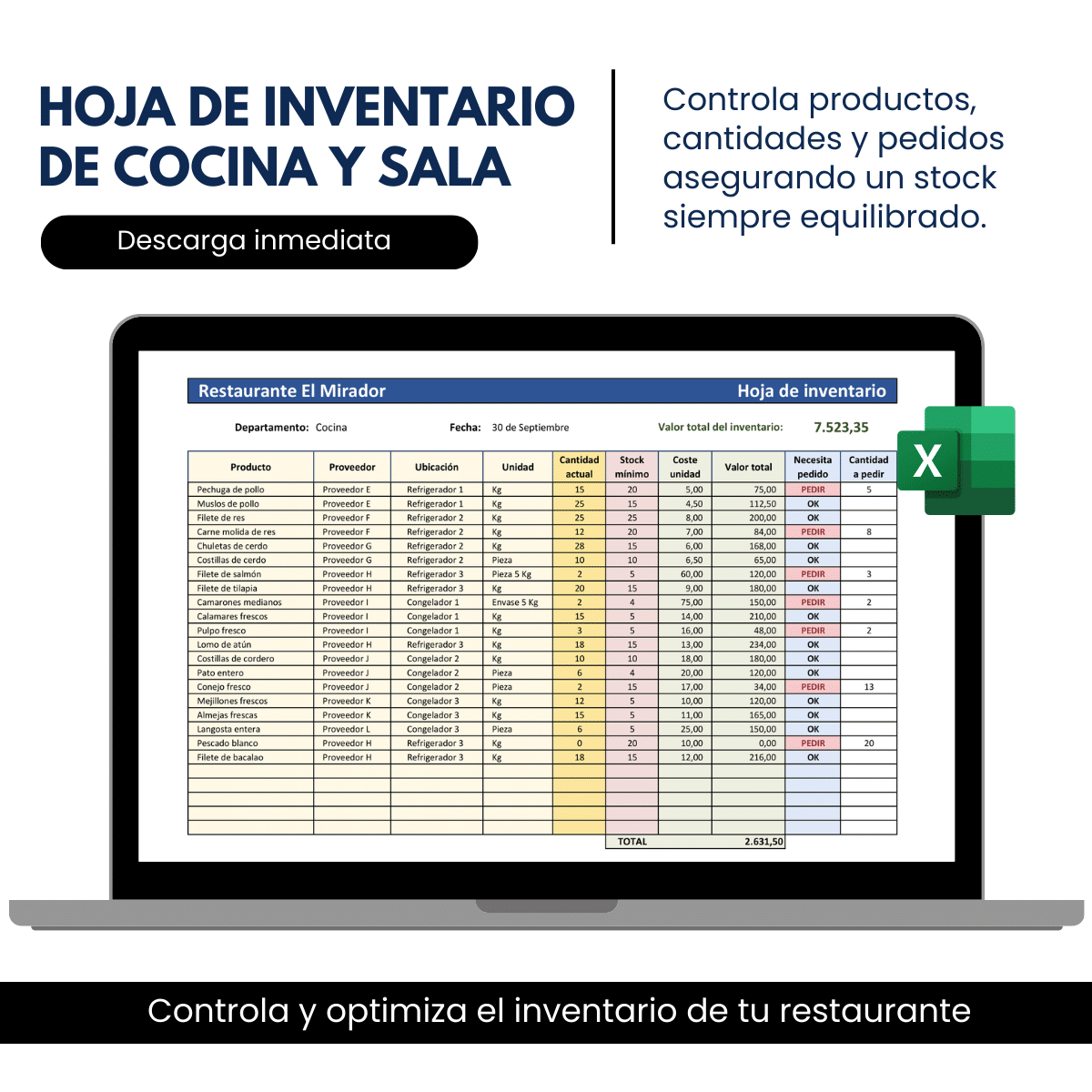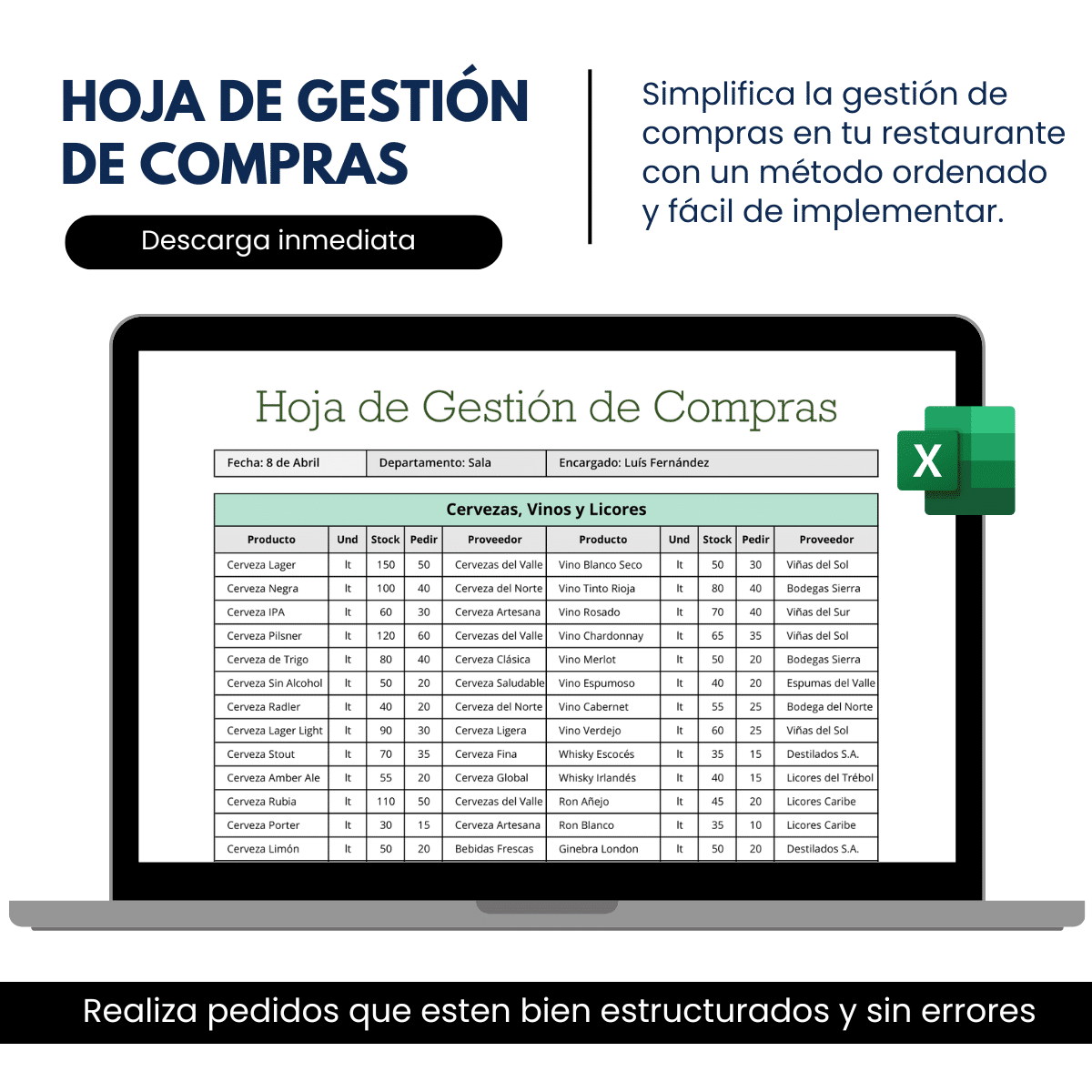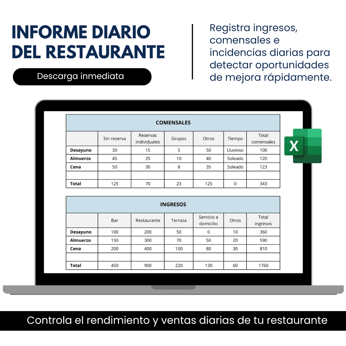 ¿Necesitas más orden y organización en tu restaurante? Este paquete incluye 30 plantillas profesionales para restaurantes que te ayudarán a gestionar cada aspecto de tu negocio, desde la cocina hasta la administración del personal. Son plantillas Excel completamente editables, imprimibles y listas para usar, estas herramientas te permitirán mejorar el funcionamiento del restaurante y mantener un control total del negocio.