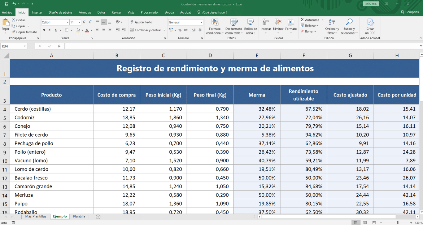 Con esta plantilla, cada kilo que compras tendrá un valor claro, y cada porción que sirves estará respaldada por datos reales, no por estimaciones.