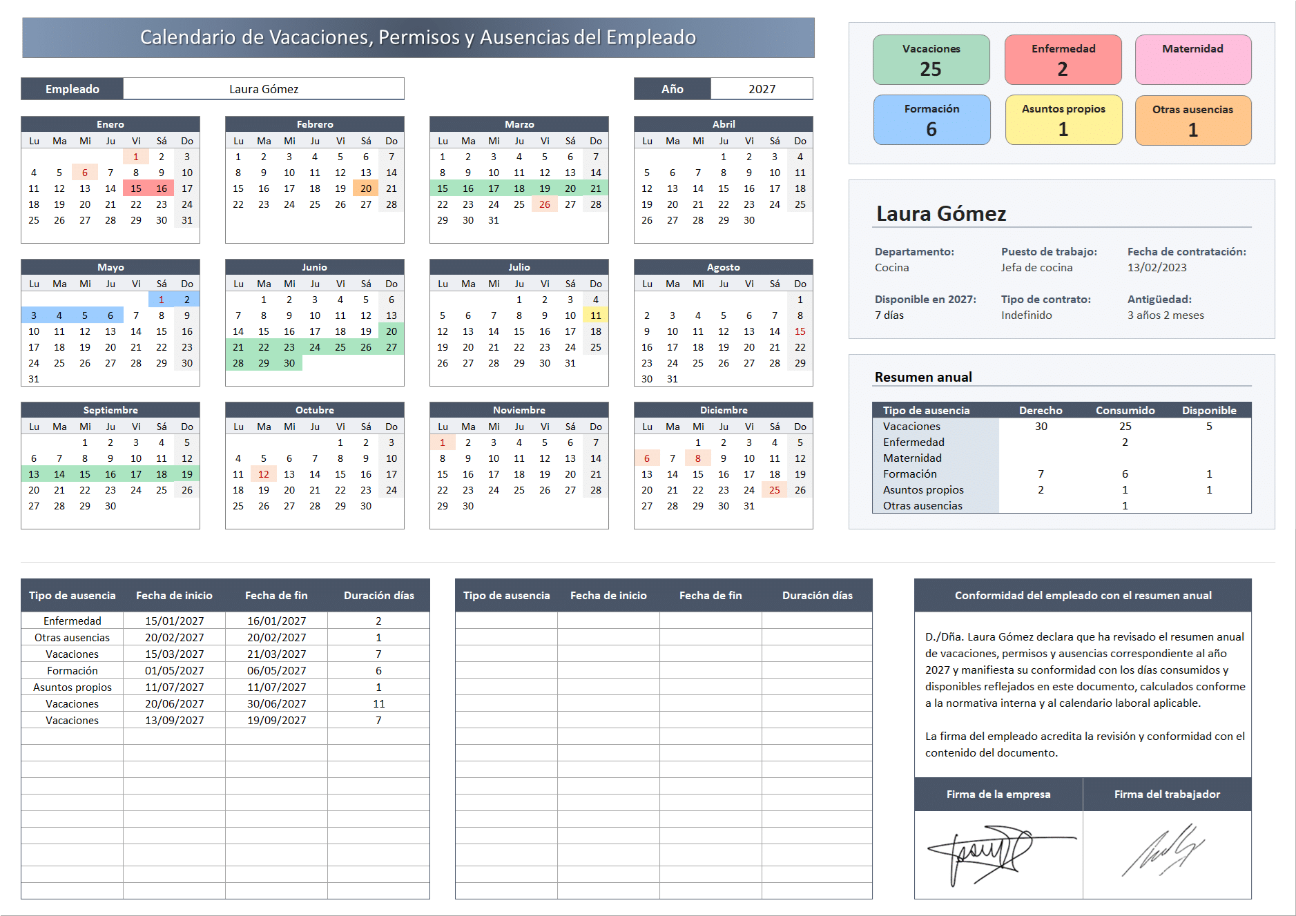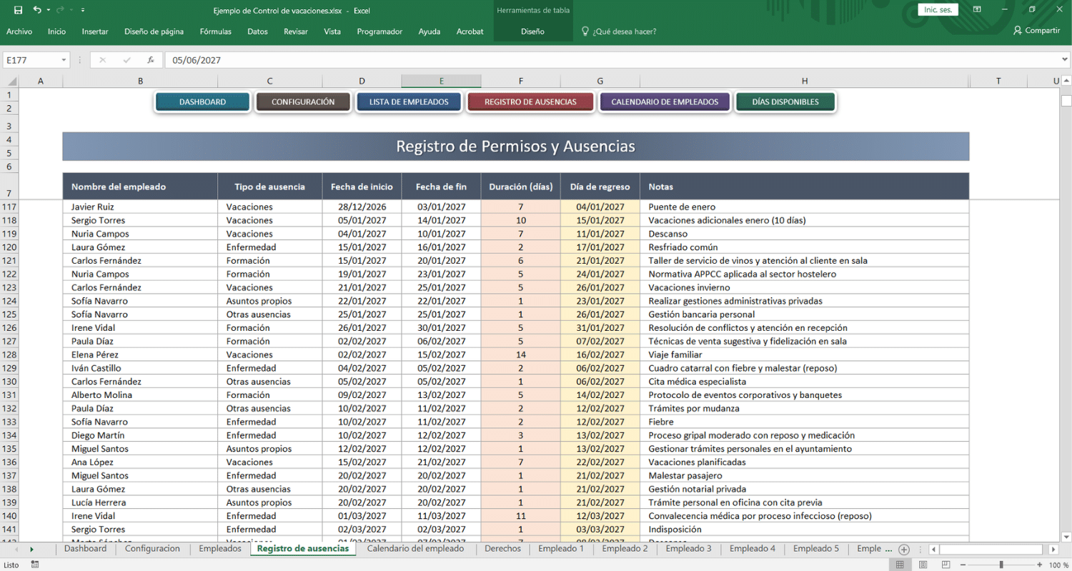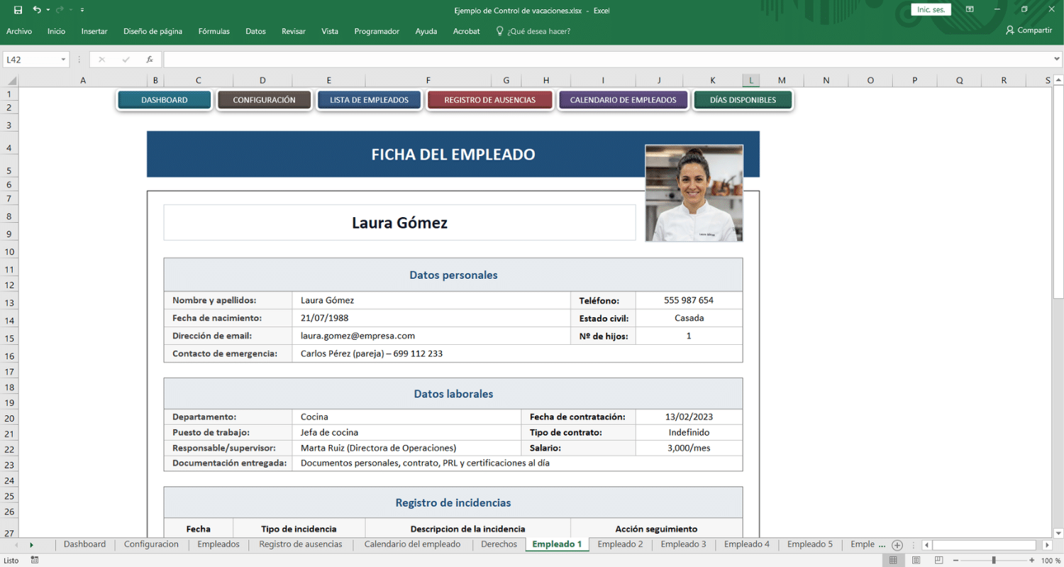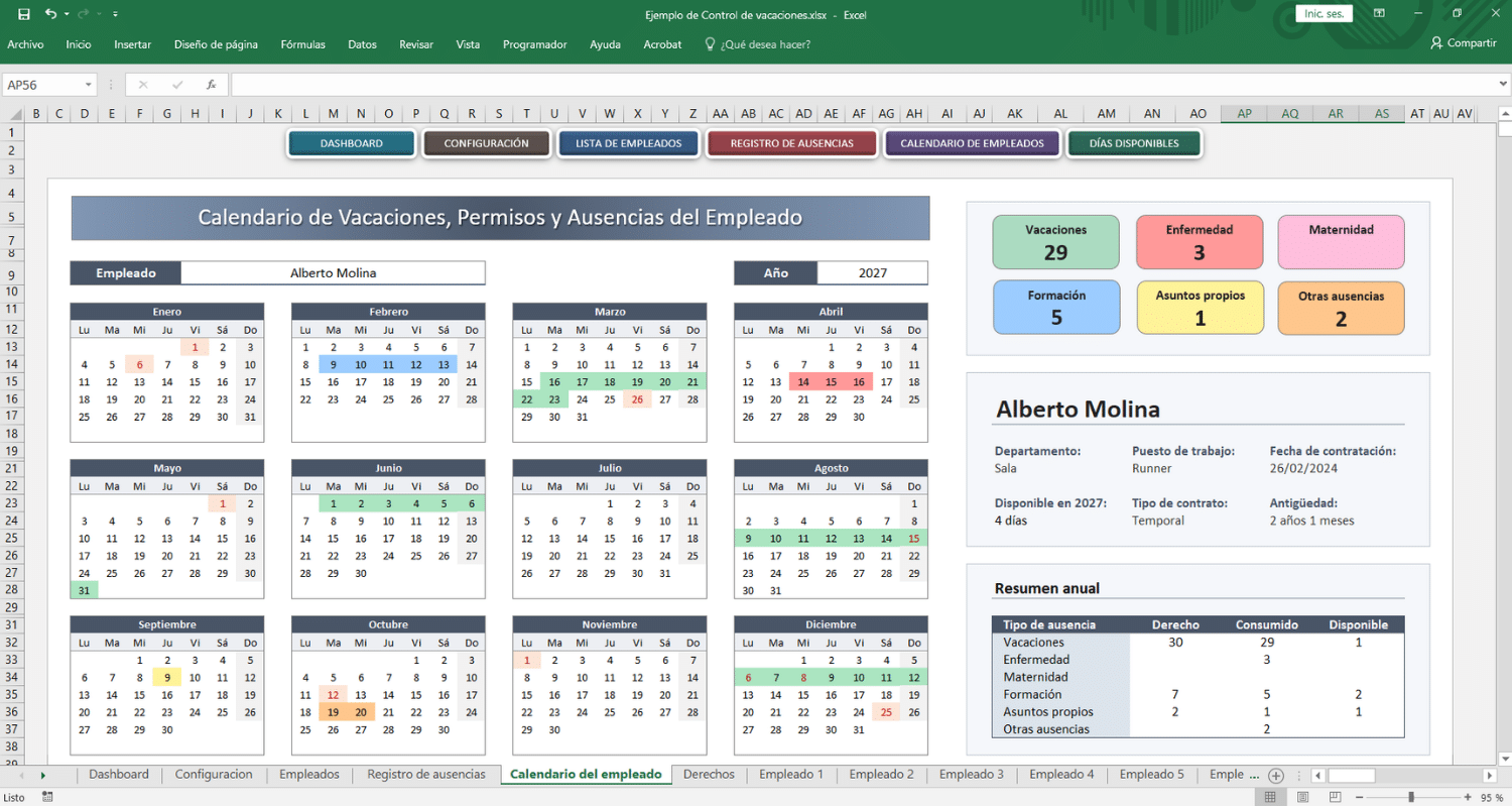 Control de vacaciones en excel