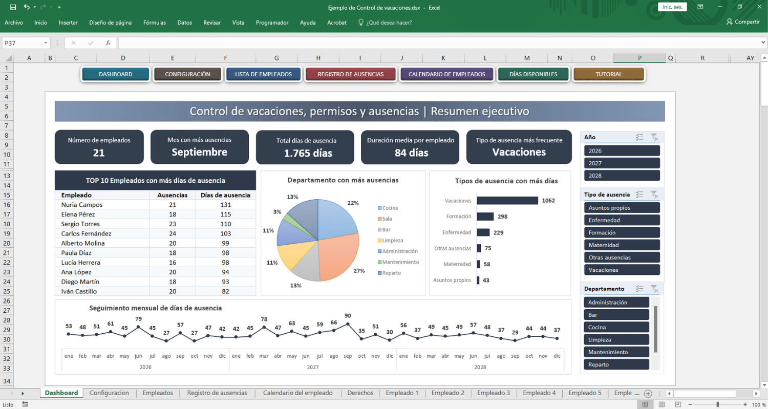Control de vacaciones para empleados (Calendario + Dashboard)