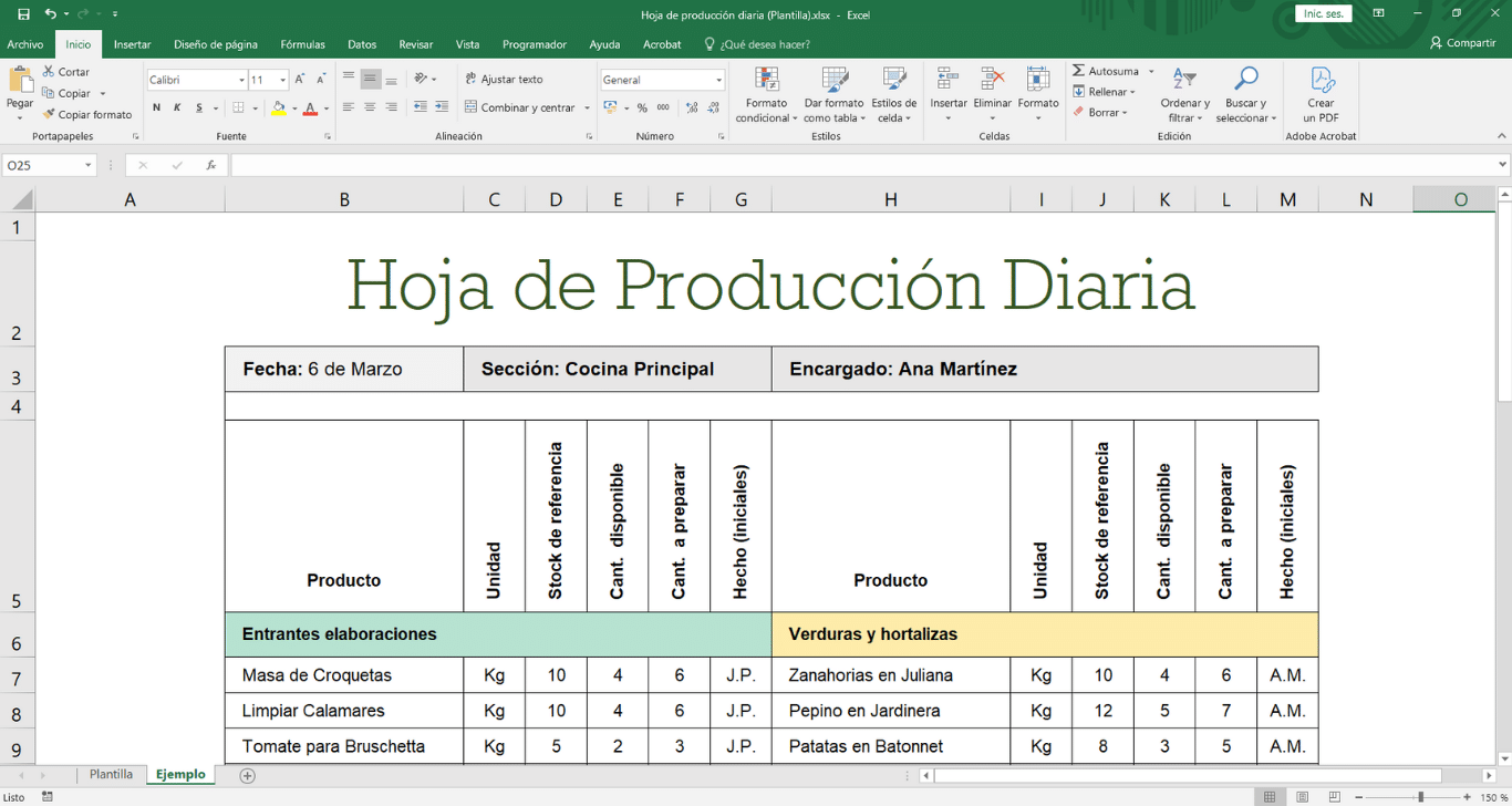 Ideal para chefs y cocineros con responsabilidades de gestión que necesitan mantener la producción diaria bajo control. Si buscas tener todo en orden, trabajar mejor y con más exactitud, esta hoja te va a venir muy bien.